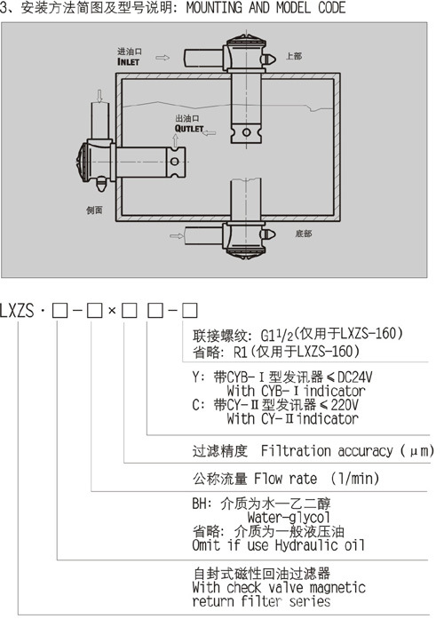LXZS自封式磁性回油過濾器技術參數: